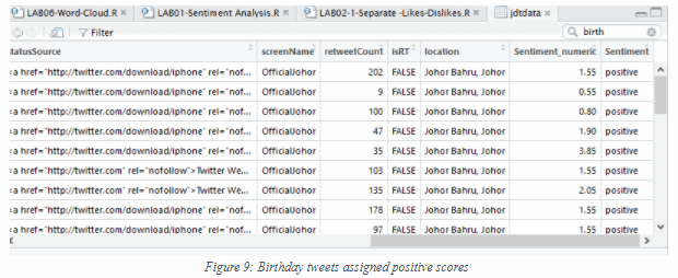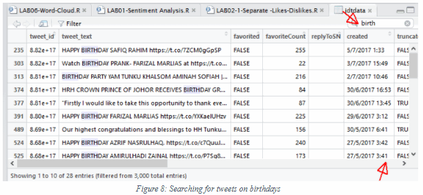 From RStudio, search for birth as the keyword to find tweets about birthday wishes and announcements: