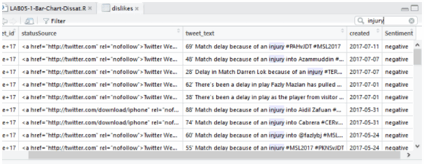 Our field of interest will be the actual tweet text which was aptly named well, tweet_text! Our approach will be by analysing the rows, or record entries, we look for certain key words that carries positive, negative or neutral connotations. Tweets that contain words or text like “congratulations” and “GOAL” will be given a score of 1, denoting a positive and words like “misses” will have a negative reflection. You get the idea. The approach will be by assigning a -1, 0 or 1 for each of the rows respectively reflecting whether they are negative, neutral or positive comments or tweets. Alternatively, we can use the script below to perform the analysis of which numeric values will be assigned to each cell. Consequently, by applying certain commands, those values can be converted to “positive”, “negative” and “neutral”.