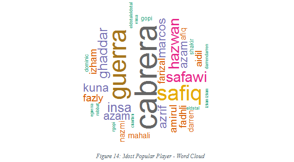 Would you like to know who’s the most talked about player? Let’s create a word cloud for us to find that out. But prior to that, do understand that tweet text also contains words that we do not want to count such as stop words, URLs and junks.