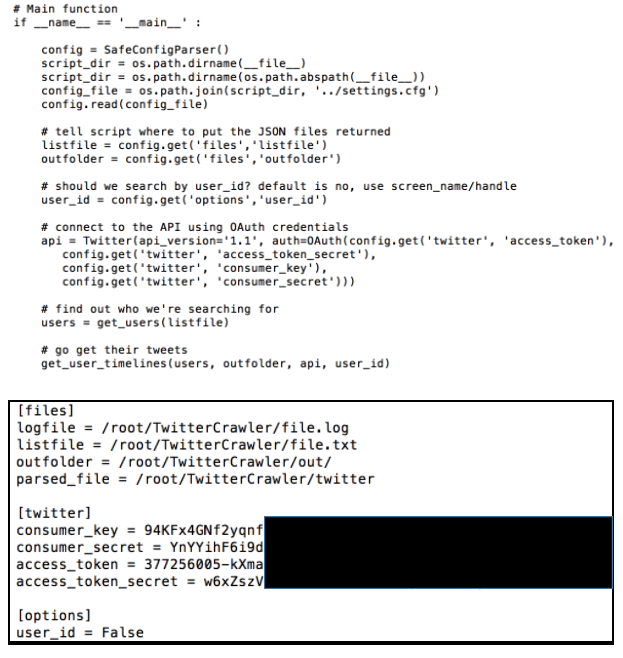 All the secret keys will be written in the configuration file. For example, I have created a setting.cfg file and put all files path and twitter secret keys in it.