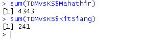 sum(TDMvsKS$Mahathir)