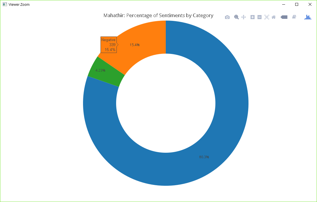 This will create an object, ap which when called will draw a pie chart comprising the three sentiments.